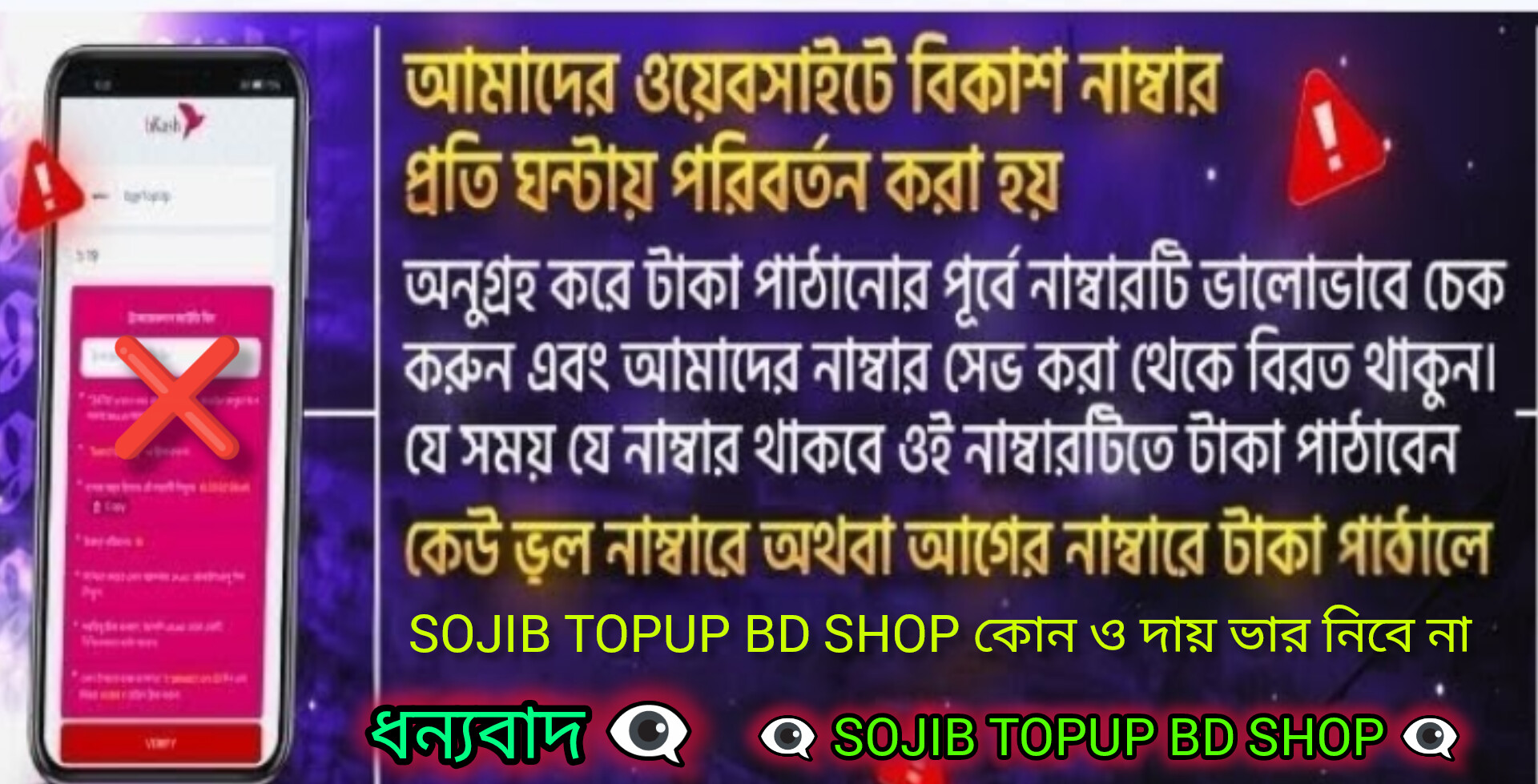 বা/মা বা ফ্যামিলির ফোন থেকে টাকা চুরি করে অর্ডার করলে তার বিরুদ্ধে আইনগত ব্যাবস্থা নেওয়া হবে! 7 XSURZOএ রাত দিন ২৪ ঘন্টাই টপআপ চালু থাকে । ৩০ সেকেন্ডেই ডেলিভারী হয় - যেকোন সমস্যায় আমাদের Whatsapp এ মেসেজ দিন 01953215385